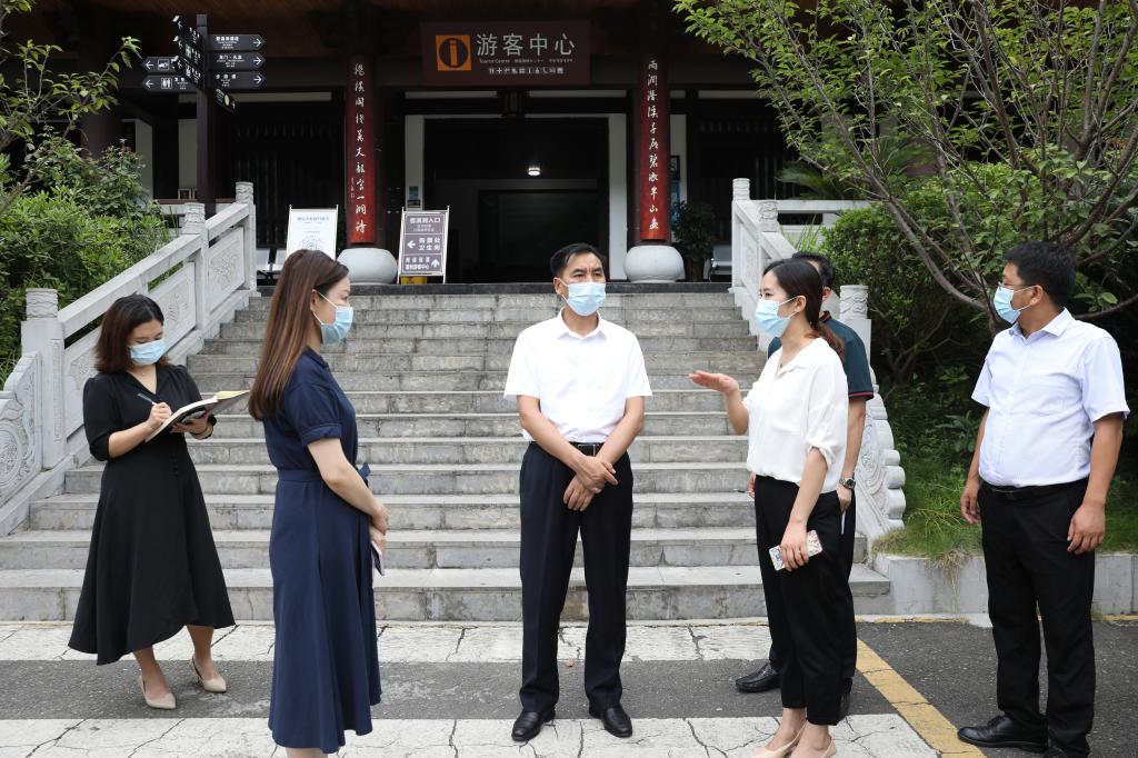 在雪溪洞景区,张骏听取了景区运营情况,详细了解了景区人员管控、值班值守等疫情防控措施落实情况。他指出,当前正值暑期旅游旺季,旅游行业疫情防控工作压力大、任务重,要高度警觉、提高认识,落实落细各项防控措施,确保游客玩得安全、舒心、放心。他要求,要强化风险意识,树立底线思维,坚决克服麻痹侥幸心理,全面压实各方责任,严格落实各项疫情防控措施,保障旅游出行安全。要耐心细致做好服务工作,加强管控,特别是景区景点要按照“限量、预约、错峰”要求,切实做好疫情防控、游客疏导工作,加强日常安全检测,严防人员密集扎堆,教育引导广大市民和游客落实扫码、测温、戴口罩等防疫措施,切实提高自我防护意识。要进一步细化管理措施,规范游览秩序,做好宣传引导,倡导文明旅游,健全应急预案,提升管理能力,抓实抓细各项工作措施,确保旅游景区平稳安全有序。