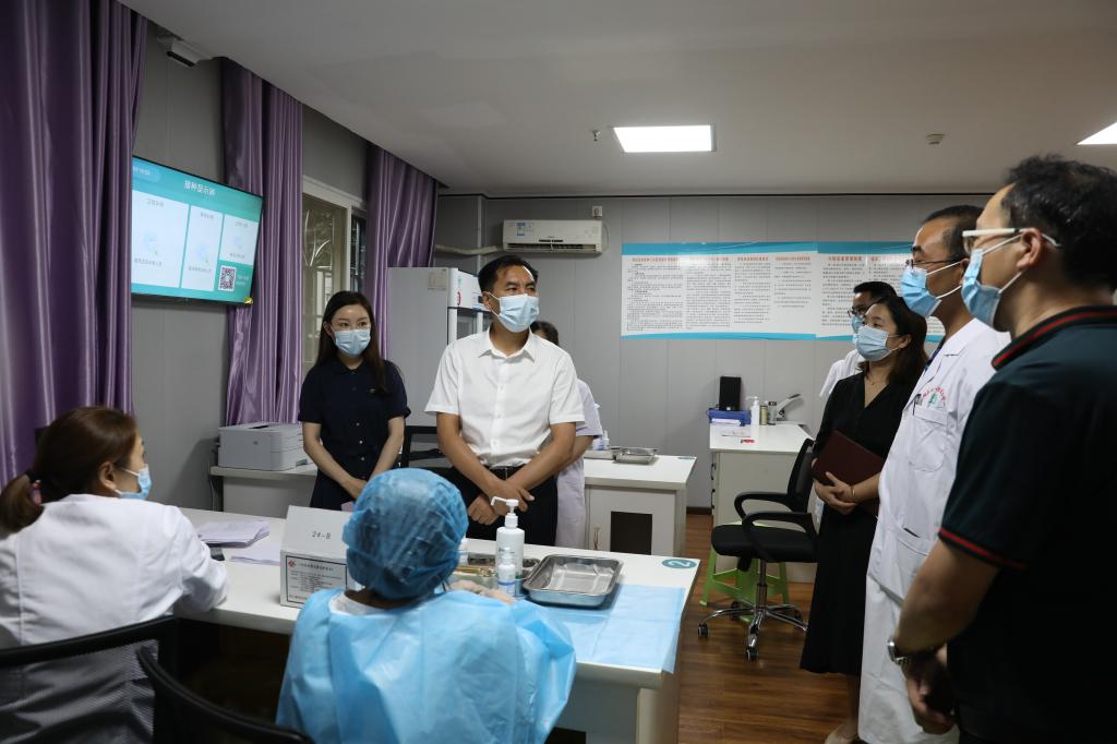 在朝天社区卫生服务中心,张骏详细了解了接种信息登记、疫苗接种现场秩序、留观、应急处置、工作人员配备等情况,详细询问了疫苗配备储存、核酸检测、防管控措施、物资供给等情况。他要求,要进一步完善疫苗接种规范化管理工作,优化疫苗接种流程,做实做细每个环节。要做好防暑降温工作,为前来接种疫苗的人群提供防暑降温饮料及必需的药品,进一步完善疫苗接种配套服务。要严格按照医学要求管理,抓实抓细医学隔离各项措施,加强日常消杀工作,工作人员要做好自身防护措施,注意自身安全,坚持严防严控,把各项防控保障措施落实到位,全力维护人民群众生命安全和身体健康。