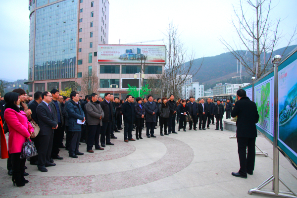 在朝天城区,与会人员仔细聆听朝天城市建设规划思路,感受我区统筹城乡的巨大变化和喜人成绩。2012年,我区始终坚持统筹城乡发展战略,牢固树立经营城市理念,按照“北扩西拓,南连东进”的城区发展布局,坚持旧城改造和新城开发联动,加快中心城区建设,草房沟新区开发签订投资协议,“八路一桥一厂”、明月峡景区服务一条街等项目开工建设,东升国府、明月水岸等城市综合体全面竣工,新开发商住房8.5万平方米,城市品位、人气、商气不断提升。中子、羊木等重点集镇实现提质扩容,曾家、平溪、青林等重点集镇风貌塑造全面完成,高标准、高质量、高水平打造了沙曾平百里新农村示范片。全区城镇化率达27%,增长2.7个百分点。城乡基础设施进一步完善,新型城镇化进程进一步加快。