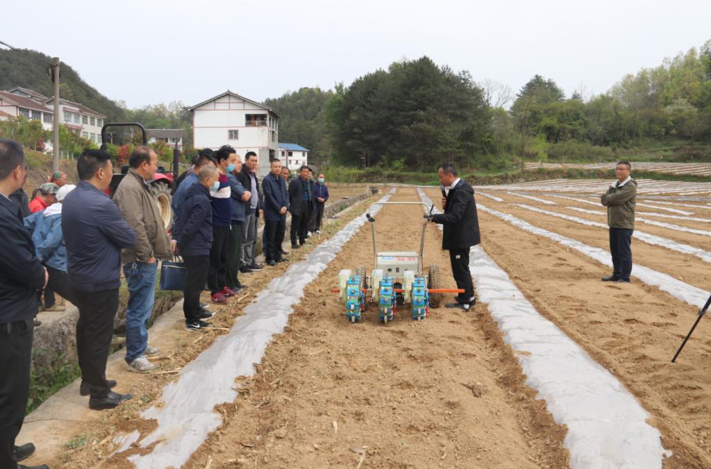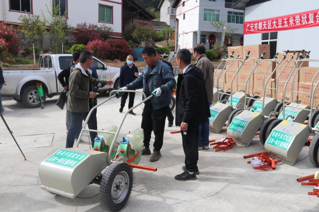 4月12日,广元市朝天区举办了2022年大豆玉米带状复合种植机具推广发放仪式暨机具演示培训会。