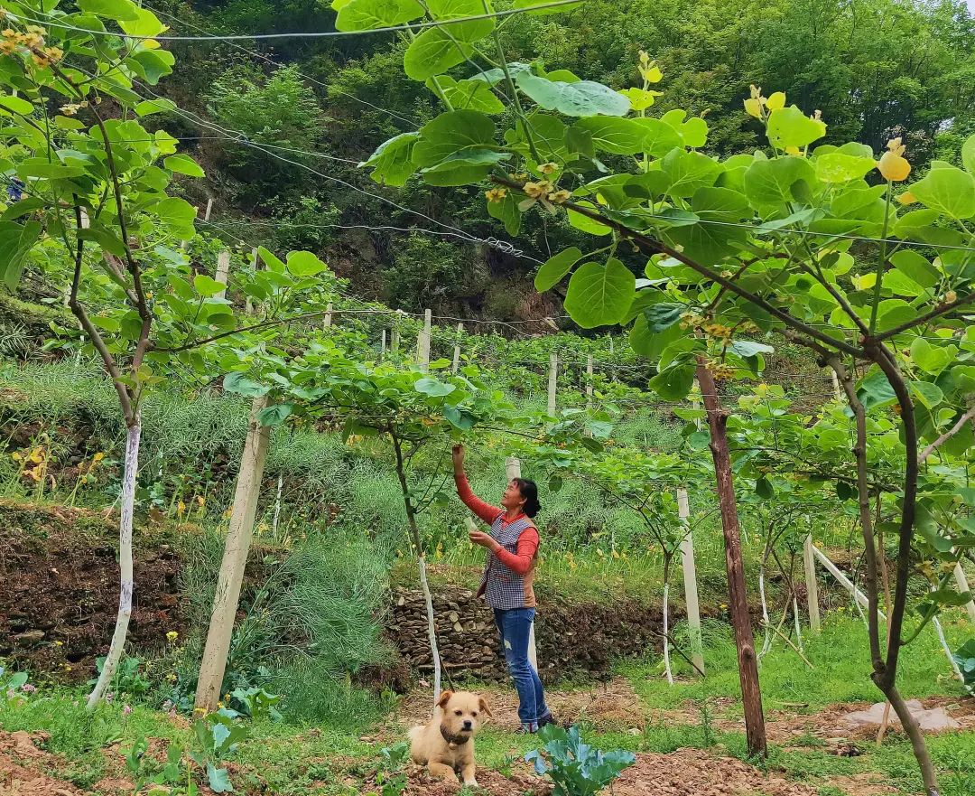 阳春四月,云雾山脚下的石门村猕猴桃产业园区内一派繁忙景象,村党支部书记郑大海和村民们在园区内忙碌着,有的修枝整形、有的填埋有机肥料、有的加固枝条……