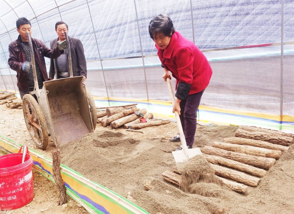 在铺好的菌棒上覆上细沙