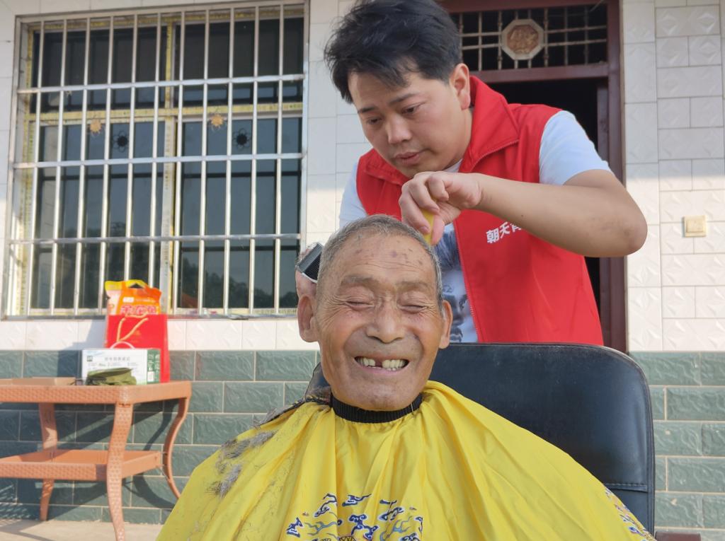 (甘茜倩冉金鹭)秋风送爽,最是好时节。在国庆、重阳双节来临之际,为弘扬中华民族爱老、敬老的光荣传统,更好地关爱老年人,为老年人带来实在的便利。9月29日,朝天区朝天镇联合爱心企业,开展了“关爱老人 情暖重阳”义务理发志愿服务活动,为辖区内特困、重点优抚对象、高龄失能老年人免费理发。