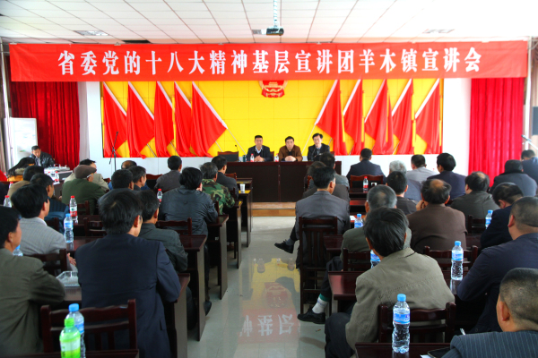本网讯(杨春恩)3月13日下午,羊木镇政府会议室里人头攒动、气氛热烈,不时爆发阵阵掌声……由省委农工委纪检专员马绍兴、西南交通大学政治学院党委书记刘占祥和利州区以工代赈办干部刘玉明组成的省委党的十八大宣讲团专家们正为来自羊木镇各村组、社区的两百多名群众解读党的十八大精神。