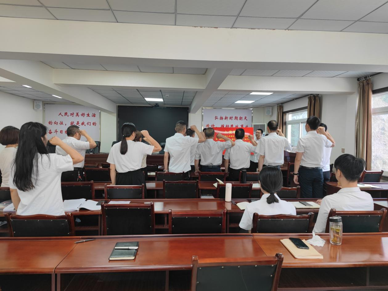 会前学习了省委十二届三次全会精神、局党组党建工作相关制度。会议在庄严的国歌声中拉开了帷幕,全体党员高举右拳,面向党旗重温《入党誓词》,再次接受洗礼,牢记党员的光荣使命。