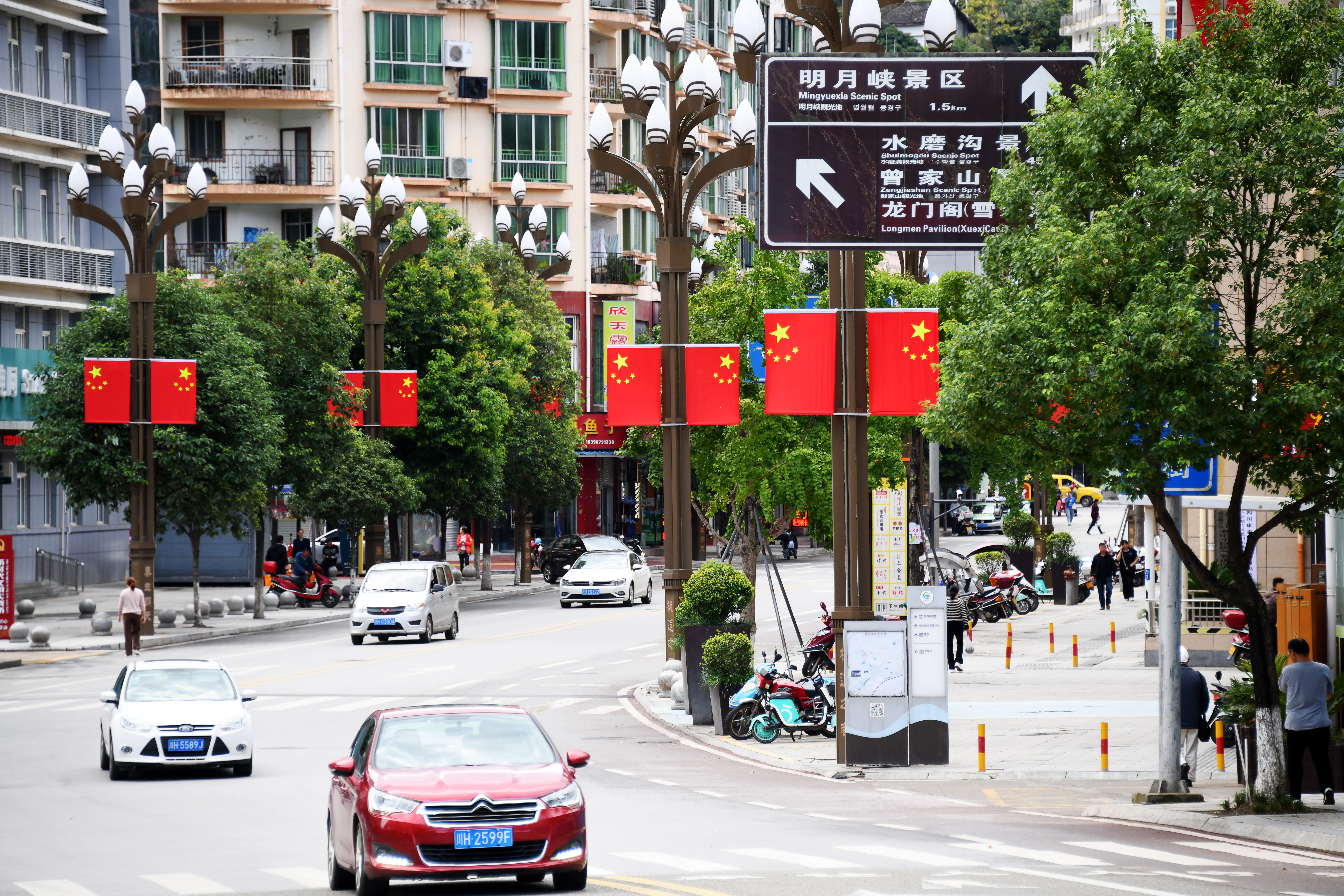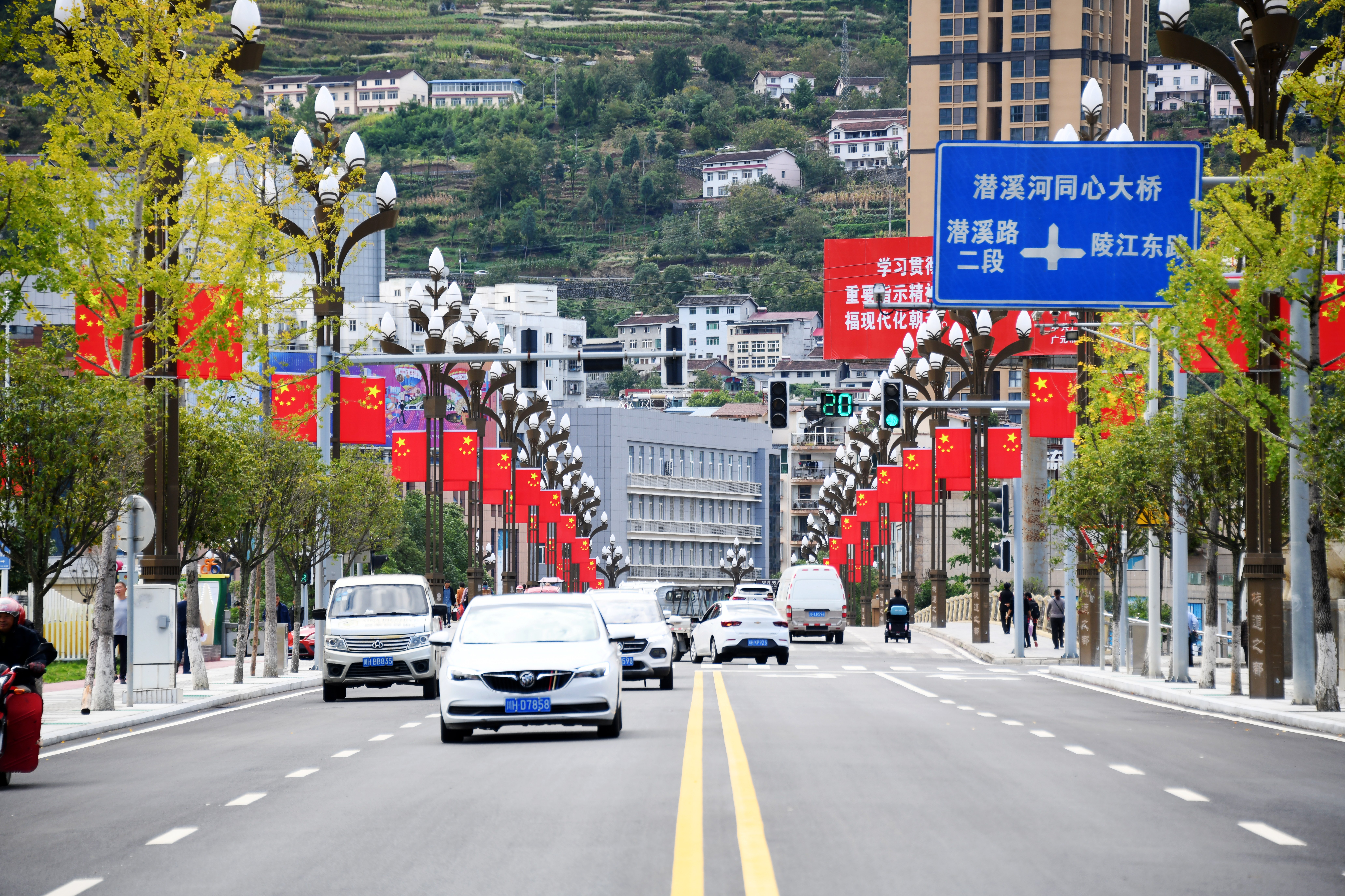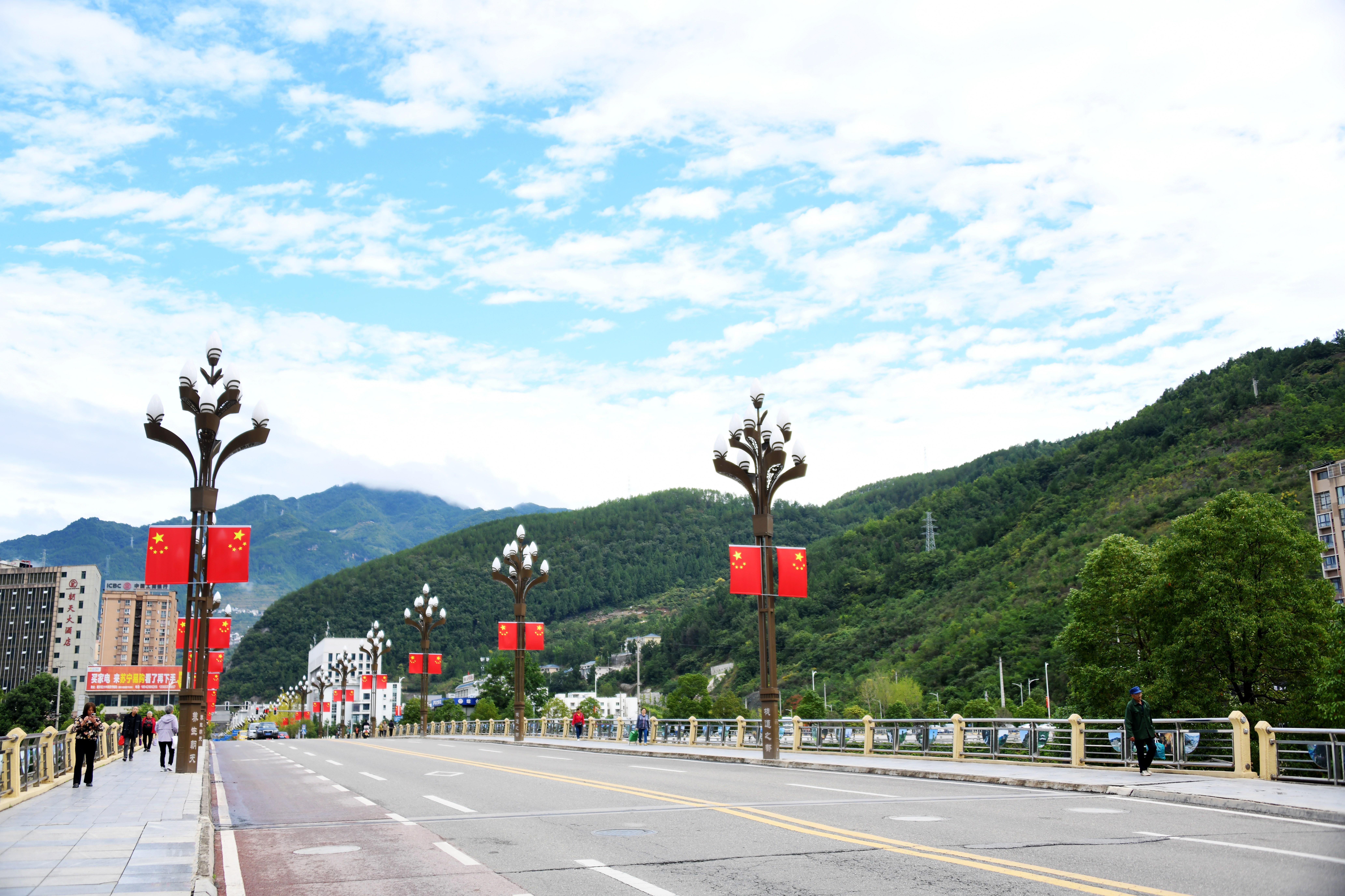 金秋九月,国庆中秋“两节”脚步临近,漫步在广元市朝天区街头、公园、广场等地方,五星红旗迎风飘扬,处处可见绿树鲜花,整座城市沉浸在喜庆祥和的节日气氛中。