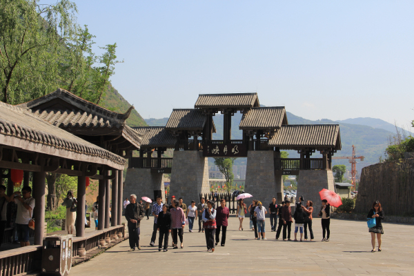 明月峡景区从早上7:00时起,前来游览的游客就开始络绎不绝,游客接待中心前面的停车场,被来自陕西、重庆、宜宾、巴中、绵阳等地的车辆停放得满满当当。景区外,售票厅、咨询处排起了长队,旅游商品购物点人声鼎沸;景区内,蜀风广场、栈道上和观景台上游客如织。