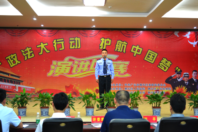 (区委政法委)一个个激情的演讲,一段段入情的诉说,在庄严的国徽下,选手们毫无保留地讲述着自己肩上的那份责任。6月17日下午,朝天区政法系统举行了“政法大行动,护航中国梦”主题演讲比赛。区委常委、政法委书记张晓春同志出席比赛现场并作动员报告。“实现伟大中国梦”主题教育活动政法口督导组长、区委组织部、区委宣传部、团区委等相关领导应邀参加活动并为获奖选手颁了奖。全区政法系统200余名政法干警观看了演讲比赛,感受那份感动,聆听那份责任。