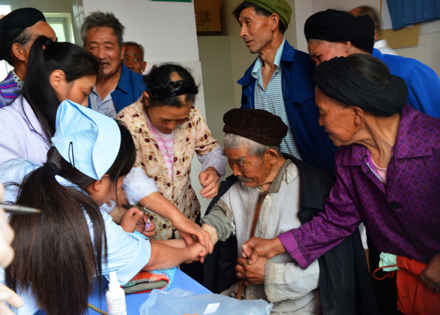 一大早,听说城里的专家来村里宣讲“中国梦”并开展义诊活动,村里沸腾开了,该村群众早早聚在了桃树村公共服务中心等候。