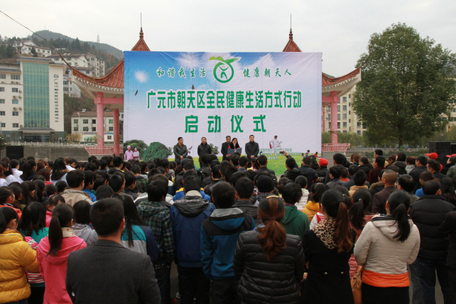 全民健康生活方式行动是由国家卫计委、全国爱卫办和中国疾病预防控制中心共同发起,主要倡导从改变个人生活习惯做起,以生活习惯的“小调整”获得身体健康的“大收益”。朝天区全民健康生活方式行动以“和谐我生活,健康朝天人”为主题,“我行动、我健康、我快乐”为口号,通过设置宣传展牌、现场专家咨询、发放宣传材料、与居民互动等形式传播健康知识,指导群众科学锻炼,促进群众形成健康生活方式意识和行为,进一步提高全区人民健康意识和健康生活方式的行为能力。