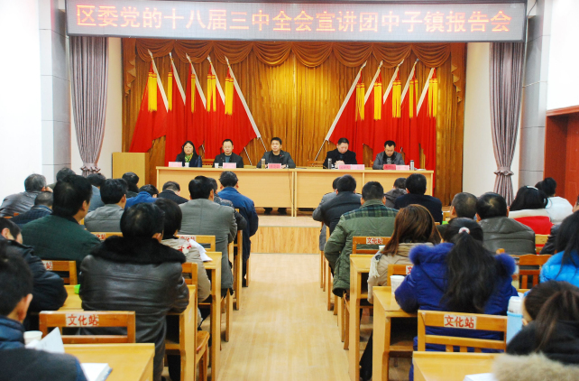 本网讯(记者 仇素淑) 12月27日,朝天区党的十八届三中全会精神第一宣讲团走进中子镇,为该镇100余名机关干部、企事业单位职工、村组干部送上一场精神盛宴。区委副书记罗凌云参加宣讲活动。
