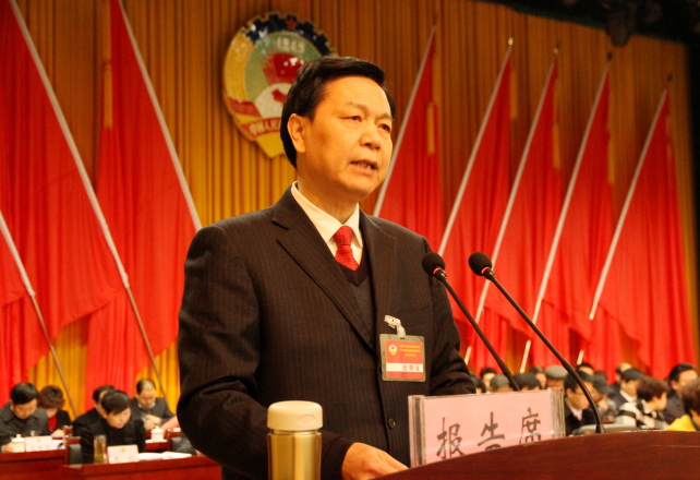 区政协主席贾光升代表政协第五届广元市朝天区委员会常务委员会向大会报告工作