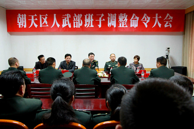 3月27日,朝天区人武部班子调整命令大会召开。广元军分区政委叶佩,广元军分区政治部主任陈黎明,区委书记、区人武部党委第一书记蔡邦银,区委副书记、区长伏玉琼,区委常委、常务副区长徐骁出席会议。会议由广元军分区政治部主任陈黎明主持。