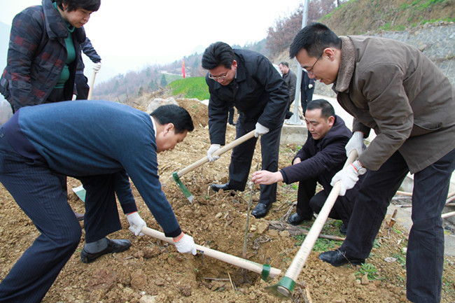 栽下的是一棵棵树苗,种下的是一份份希望。蔡邦银一边植树,一边对随行人员说:“开展植树活动,不能是形式,更不要作秀,要踏踏实实把树栽好,林业部门要做好技术指导,栽上一株,成活一株。”顾不上休息,蔡邦银一口气栽下20余棵核桃树苗。