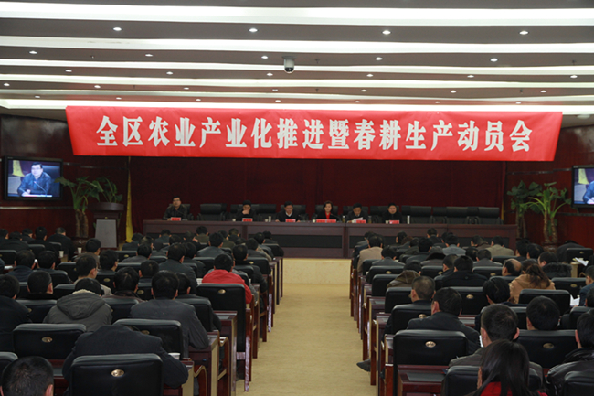 2月17日,全区农业产业化推进暨春耕生产动员会召开。会议主要任务是对今年全区农业五大优势特色产业发展和春耕生产工作进行部署。会议由区委常委、区总工会主席王天会主持。