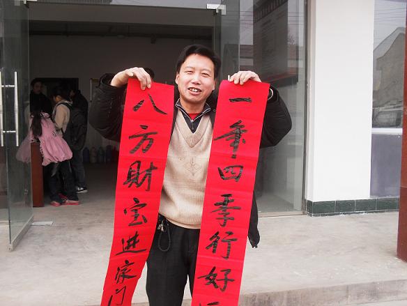 活动现场喜气洋洋,热闹非凡,村民来了一批又一批,营造出了一番浓浓过节气息。村民的积极性也带动了现场三位老师的热情,他们针对不同群众的需求,创作出了一幅幅内容丰富、寓意吉祥的春联。