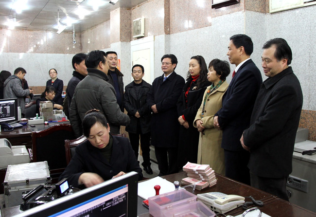 蔡邦银一行先后来到区财政局、国投公司、地税局、国税局、农行、信用联社,与干部职工亲切交谈,向他们致以诚挚的问候和良好的祝愿,并对他们2011年全面、圆满、超额完成全年目标任务表示祝贺和感谢。同时希望他们在新的一年里紧紧抓住良好的发展机遇,坚定信心,创新工作,为建设生态、文明、繁荣、和谐新朝天而努力。