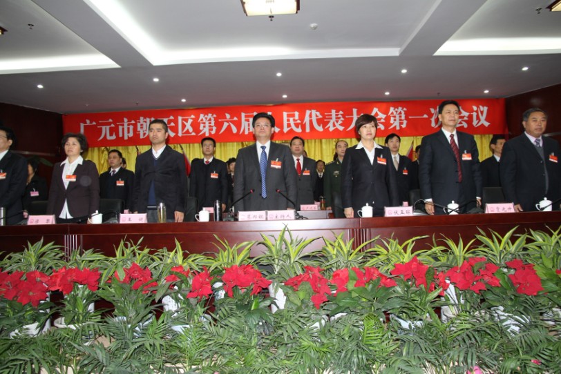 上午9时,在庄严的国歌声中朝天区第六届人民代表大会第一次会议开幕。
