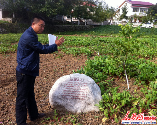 中子镇镇长张绍军向记者介绍核桃树品种 人民网记者罗旭 摄