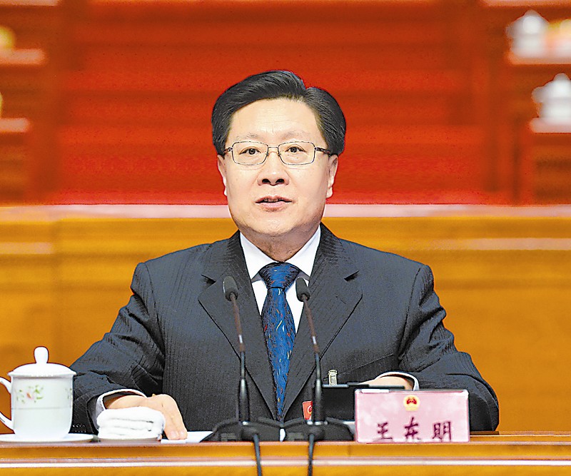 大会主席团常务主席、执行主席王东明主持会议。