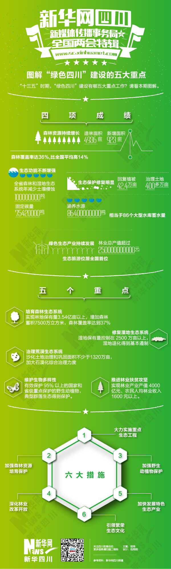 “十三五”时期,“绿色四川”建设有哪五大重点工作?请看本期图解。
