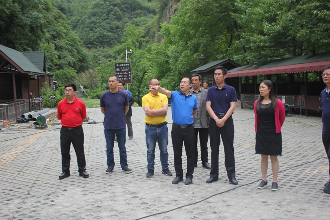 张晓春一行现场察看了游客中心、停车场、旅游厕所、观光车道、步游道、安保等旅游服务设施,与景区工作人员交流了解了有关情况,听取了景区近期筹备工作的汇报。