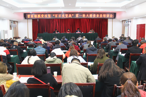 会议宣读了《曾家镇脱贫攻坚“百日攻坚战”第一轮大排查工作方案》,对曾家镇脱贫攻坚“百日攻坚战”第一轮大排查工作进行了安排,对排查范围和对象、排查内容、排查时间节点等业务开展了培训,对贫困户稳定增收调研指导及安全生产等工作进行了安排。
