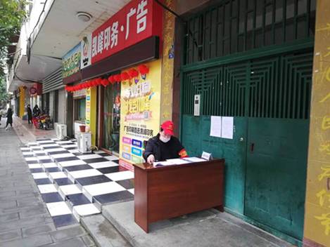 在五丁街、明月路片,区人大机关志愿者佩戴红袖章,与团区委和区委群工局志愿者一同对责任片区内住宅小区、仓储物流、经营门店等地逐一开展摸排登记、居民日常行为劝导、疫情防控舆论宣传、爱国卫生运动等工作。截止目前,共发放宣传资料500余份,劝导未戴口罩商户、行人100余人,为阻断疫情传播、防止疫情蔓延,贡献了力量。