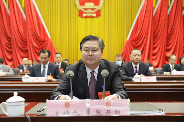大会主席团常务主席、闭幕会执行主席张开翅主持闭幕会。大会主席团常务主席、闭幕会执行主席马丽、邝庆林、张满德、杨治国、向荣华在主席台前排就座。
