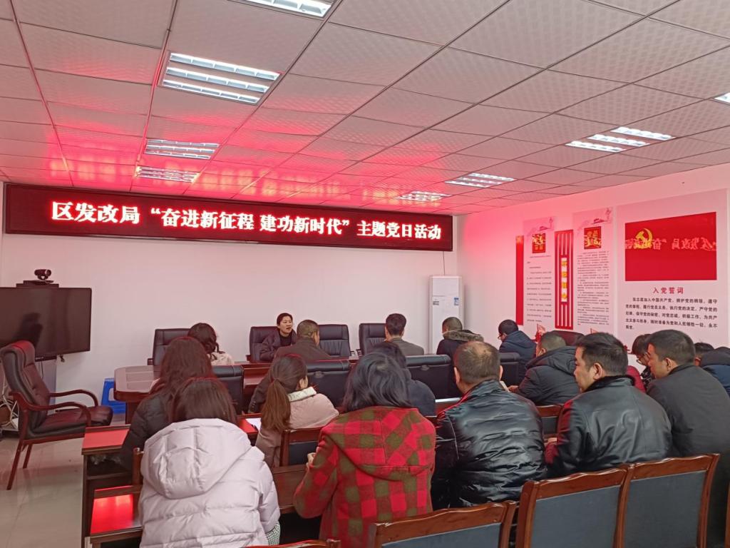 2月25日,区发改局党支部组织开展了“奋进新征程·建功新时代”主题党日活动。会议由党支部副书记邱群云同志主持,局全体党员参会,非党员同志列席会议。