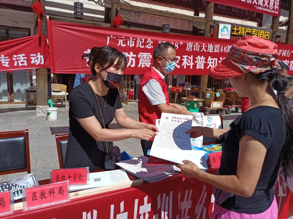 7月20日清晨,朝天区曾家镇的汉王老街开始热闹起来,赶集的,享受清凉的游客来来往往。夏日的街头,还有红十字会的工作人员和救护培训老师,正在为群众和游客们讲授急救知识,发放宣传资料。