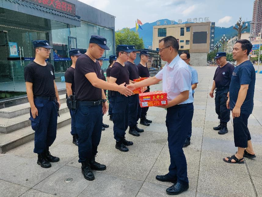 在慰问点,慰问组一行向不畏高温酷暑、坚守工作岗位的交警、特警、城市管理工作人员和环卫工人表示诚挚的慰问和感谢,并将清凉饮料送到在场的每一位职工手里,叮嘱大家夏日高温作业时要注意做好防暑降温措施。