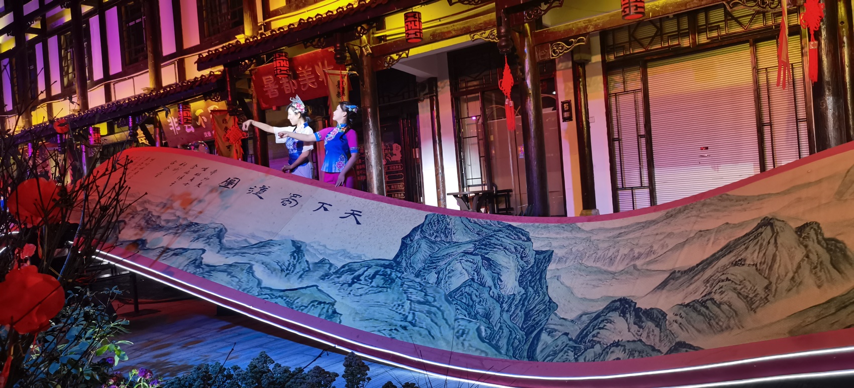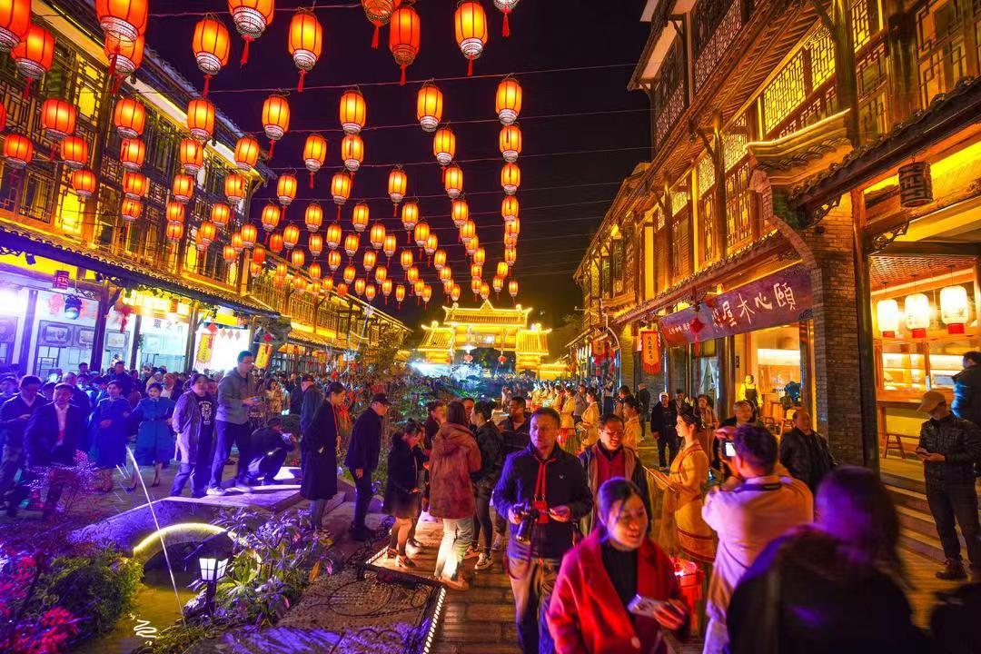11月3日晚,广元市朝天区汉王老街上演的“古风今韵绣蜀道”主题夜游活动。陈平 摄