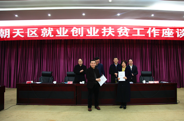 梁义斌结合朝天区实际情况就贫困劳动力创业培训作了发言,与朝天区人社局签订了《精准扶贫合作创业培训合作协议》,将对全区25个乡镇2000余户建卡贫困户培训实现全覆盖。