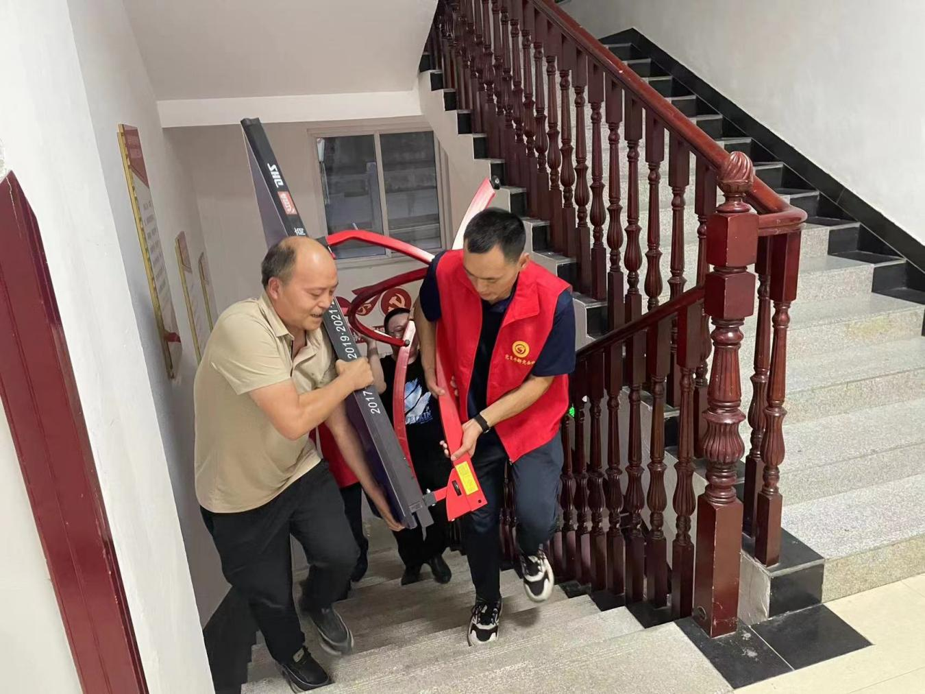 区总工会、区目标绩效事务中心组织党员干部紧急转移健身器材