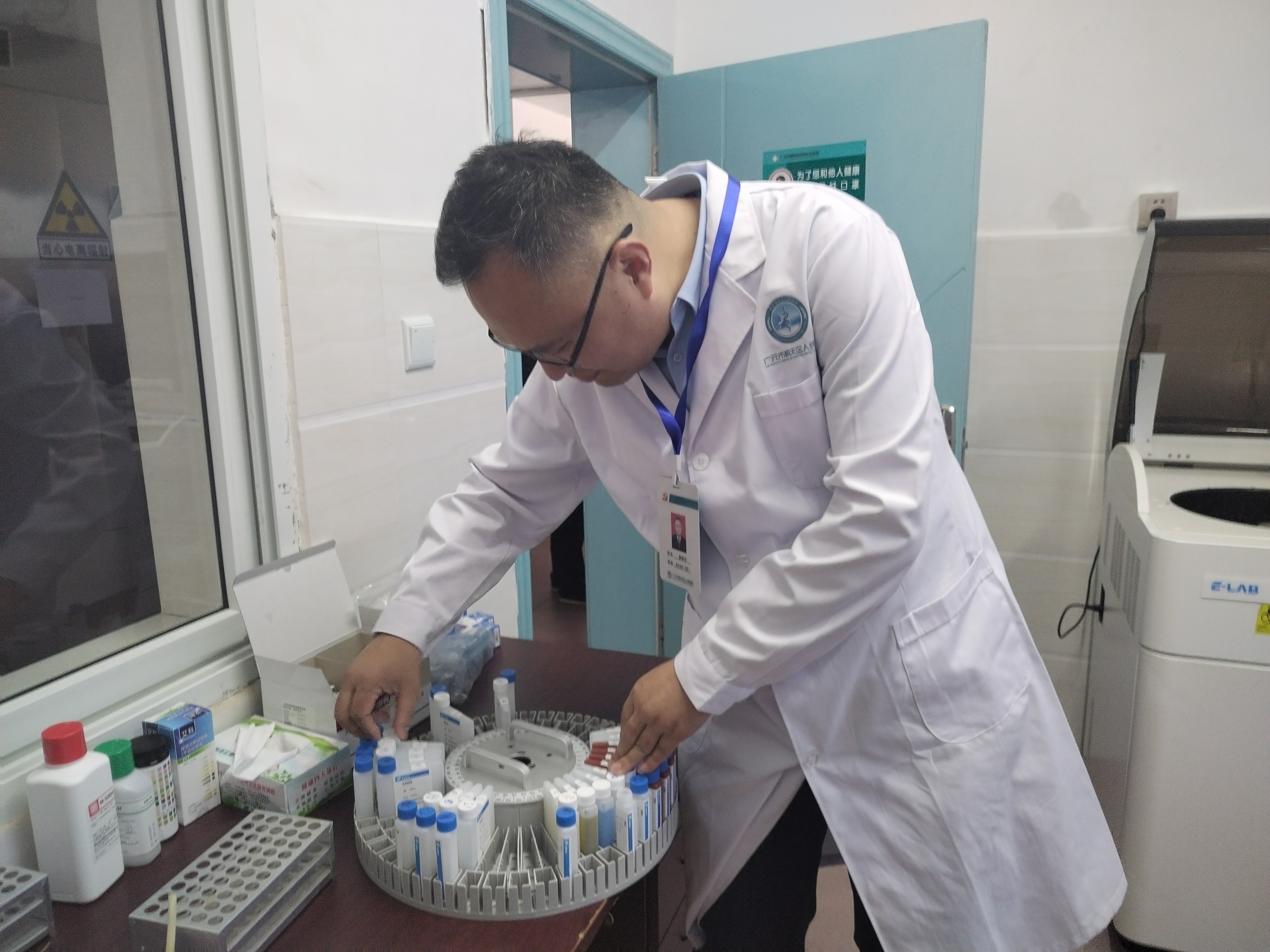 今年4月24日,董德亮得知水磨沟卫生院检验科的部分设备出现故障,导致检测结果不稳定,严重影响了日常工作的开展。安排好手头工作,董德亮立即前往水磨沟卫生院检查设备故障、制定解决方案,并对该院检验科医生进行了设备操作流程、设备保养和质量控制等专业知识的培训。