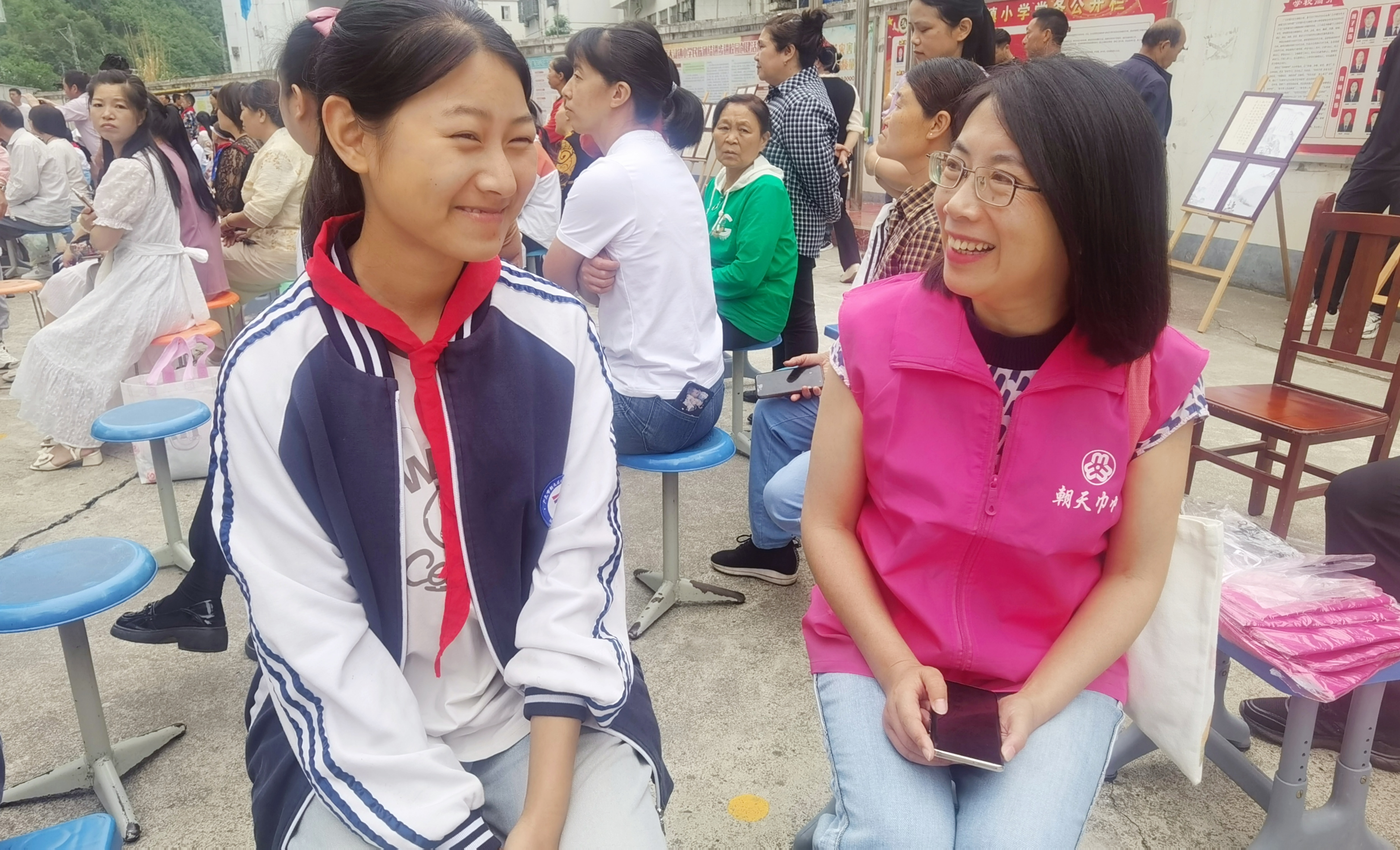 “小穆,以后我就是你的何妈妈,马上就要中考了,你要加油,考完我带你去朝天转转……”5月31日,在朝天区大滩小学操场一角,身穿巾帼志愿服装的爱心妈妈何娇与结对认亲的困境儿童正愉快地交谈着。