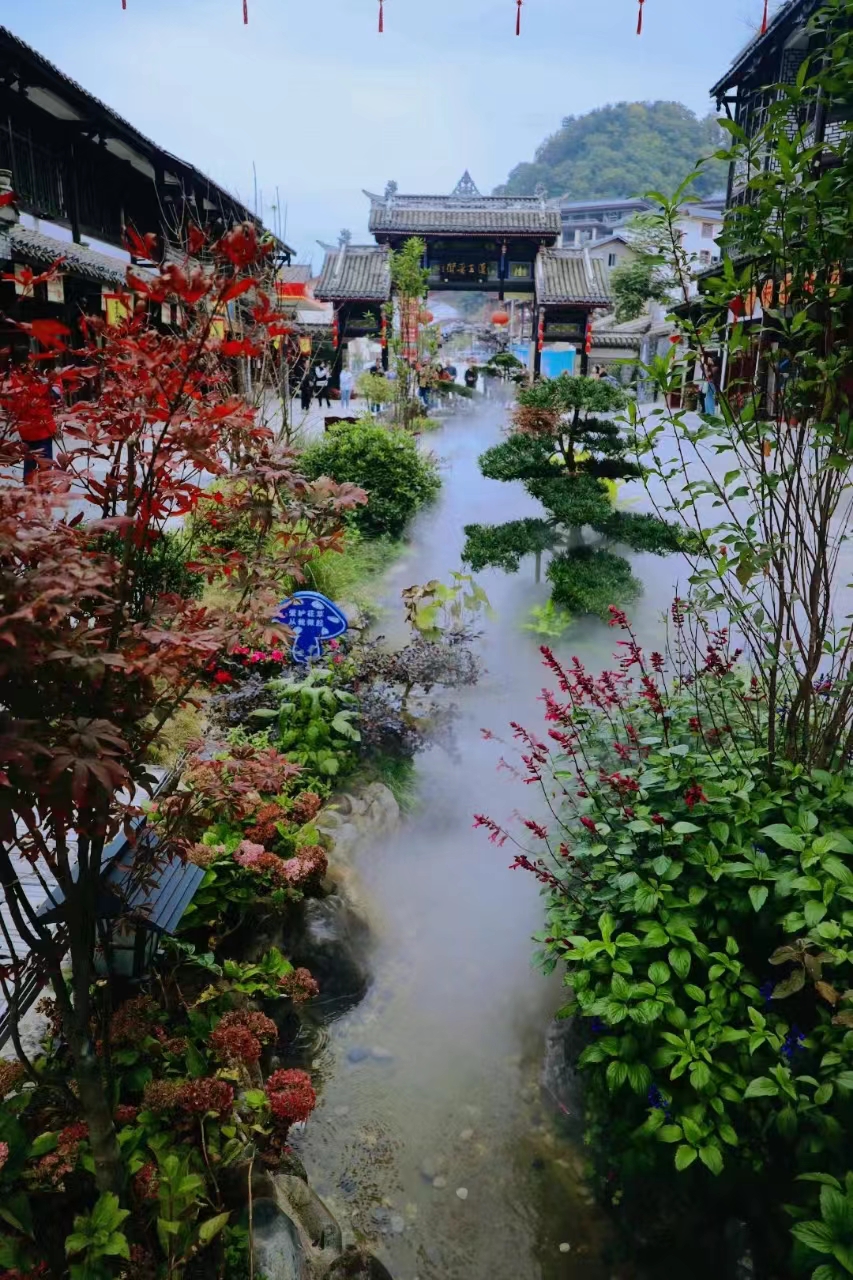 在新改造提升后的曾家场镇汉王老街,长约400米的水景观中轴线上,礼、享、悦、福四个区域依次展现,在不时四起弥漫的水雾中,问津映月、溪流漫滩、水曲石湾、流觞探影、花溪绿影等七个精品小景隐隐绰绰、如梦似幻;与两侧热闹喧嚣的美食、特产、文创店铺共同构成了一种奇异的和谐;熙攘的游客穿行其间,拍照留影、品尝美食、体验非遗,感受浓浓的人间烟火味,乐而忘返。