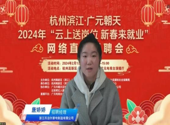 2月1日下午,广元市朝天区人力社保局联合滨江区人力社保局举办广元朝天·杭州滨江2024年“云上送岗位 新春来就业”网络直播网投在线会。