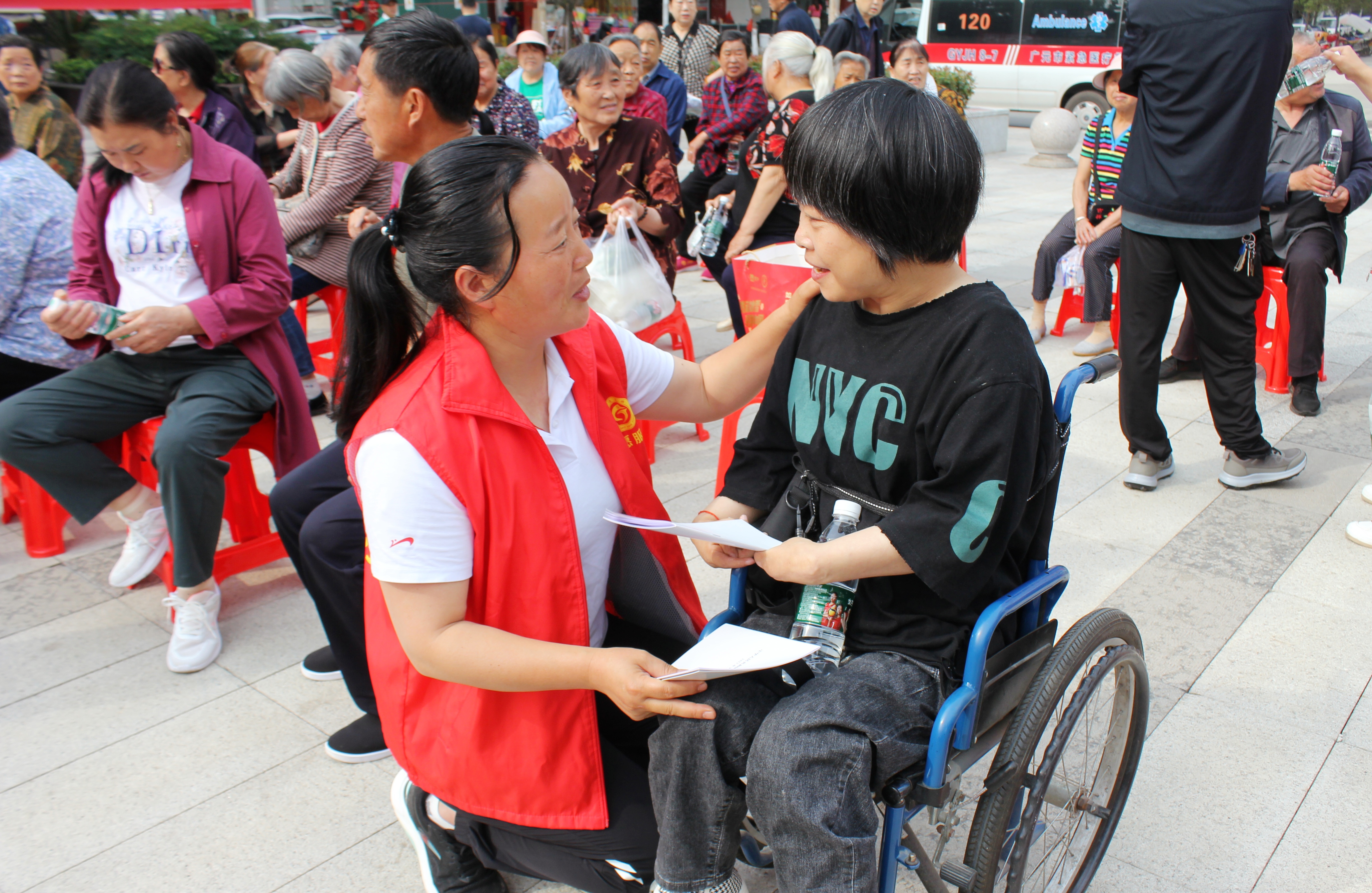 活动现场,朝天区残联会同区司法局、区民政局,通过设置展板、现场咨询、发放宣传资料等形式,宣传相关优惠政策和法律法规,普及残疾人康复及保健知识,同时积极引导广大群众关心关注关爱残疾人士。现场共发放宣传资料1000余份,接受群众咨询200余人次。