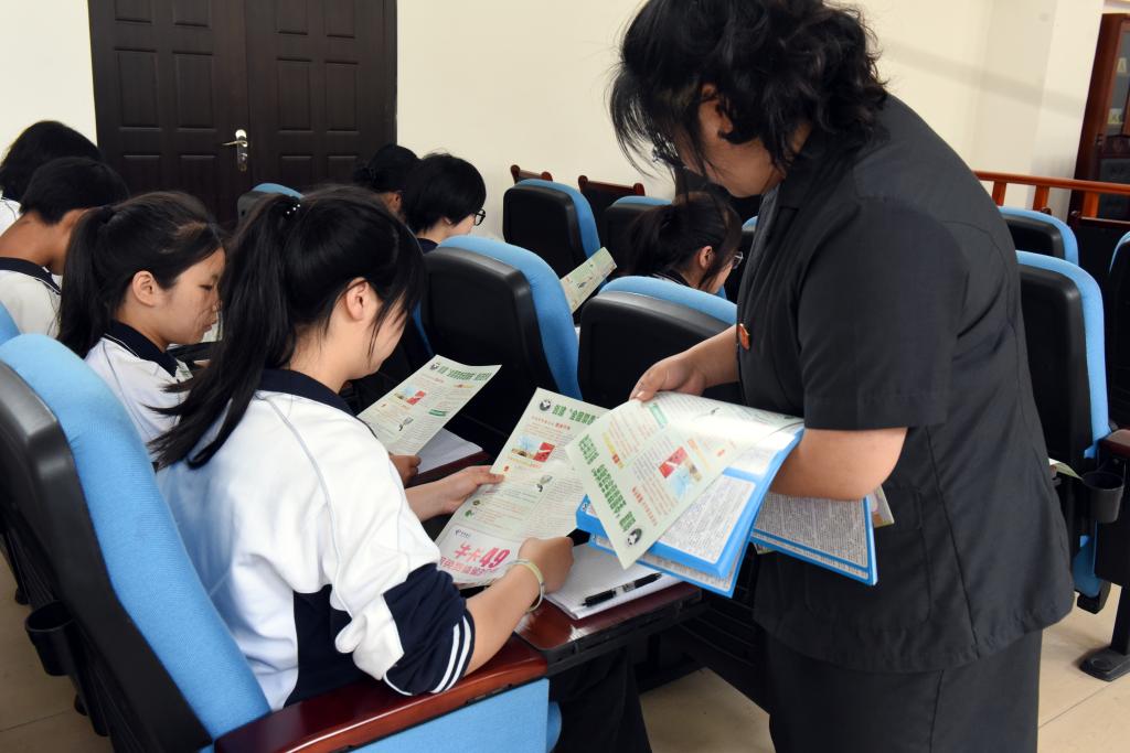庭审结束后,工作人员向学生们发放了禁毒宣传手册,并就新型毒品的种类及危害进行了讲解,提高全体学生识毒辨毒防毒的能力。随后,学生们还参观了法院诉讼服务中心、速裁调解中心等,了解了法院职责职能、立案工作等相关内容。