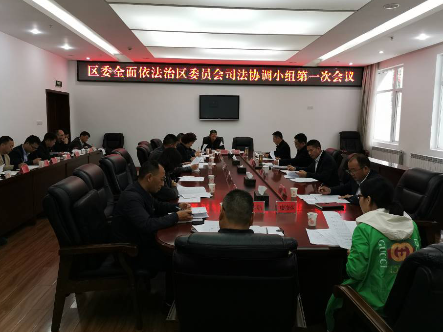 10月22日,区委常委、政法委书记李绍兵主持召开区委全面依法治区委员会司法协调小组第一次会议。会议审议了全面依法治区《司法协调小组工作规则》、《司法协调小组2019年工作要点》、《2019年全面依法治区司法协调小组工作台账》。