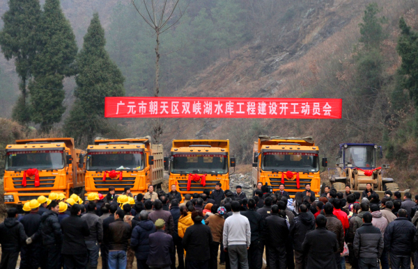 据悉,今天启动建设的双峡湖水库工程,已纳入国家发改委、水利部《西南五省(自治区、直辖市)重点水源工程近期建设规划》,属《四川省十二五大中型水库建设规划》、《秦巴山片区区域发展与扶贫攻坚规划(2012-2020年)》的重点水利工程建设项目,是我区启动建设的首座中型水库。该水库以农业灌溉、乡镇生产生活及农村人畜供水为主,兼顾生态环境用水,并作为朝天城区应急备用水源。工程总投资约4.6亿元,施工总工期39个月。工程坝址以上控制集水面积19.4平方公里,水库设计总库容1199万立方米,正常蓄水位库容1176万立方米。水库工程建设包括水库枢纽工程和灌区工程两大部分,建成后可满足转斗乡、中子镇、宣河乡、朝天镇4个乡镇和朝天城区共4.32万亩农田灌溉用水及6.1万人生活用水。同时,双峡湖水库将为中子物流园、中子工业园、中子农业园生产生活用水提供水源保障,并能提高潜溪河流域防灾能力,有效改善潜溪河水质,对促进朝天经济社会发展、加快建成全面小康具有重要意义。