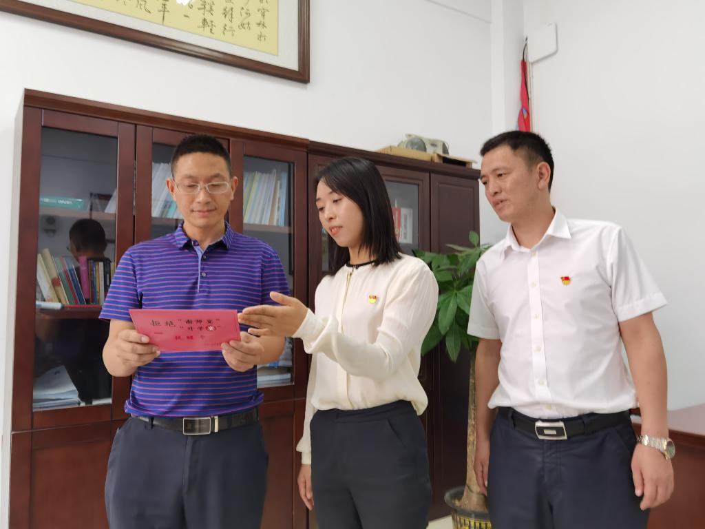 “提醒卡发放太及时了,作为一名教育工作者,一定要模范遵守,绝不参加任何形式的谢师宴、升学宴,绝不收受各种形式的谢师礼……8月30日,一张谢师宴、升学宴提醒卡送到朝天中学教务处主任刘兴华手中。他倡议,各位家长不举办谢师宴、升学宴,共同维护纯洁的师生友情,营造风清气正的社会氛围。