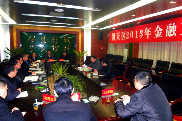(区金融办)2月1日,朝天区2013年金融工作座谈会召开,人民银行市中心支行何志成副行长、市金融学会秘书长吴懿波,区政府副区长吴健,区财政局、金融办、清贷办及区内金融机构负责人参加会议。
