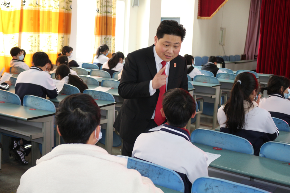 “《中华人民共和国家庭教育促进法》是什么时候实施的?”“全国家庭教育宣传周是什么时候?”……2月18日,广元中院和朝天法院干警走进羊木中学开展“法治进校园·开学第一课”活动,为同学们讲授了一堂别开生面的法治课。