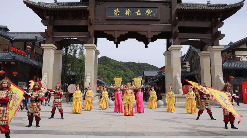 古街巡游活动在一声声雄壮的鼓声中拉开序幕,御林军排开阵列,挥舞军旗,护卫女皇上街巡游。御林军巡游古街,女皇与民同乐,让游客们仿佛置身历史画卷之中,川剧变脸、特技表演等精彩的文艺演出让游客们赞不绝口,手绘扇面小摊、投壶游戏等有趣的体验项目让游客们乐在其中。古今结合的《本草纲目》健身舞吸引了广大游客驻足观看,身着古风服饰的摊贩们售卖的当地美食、特产也让游客们大饱口。