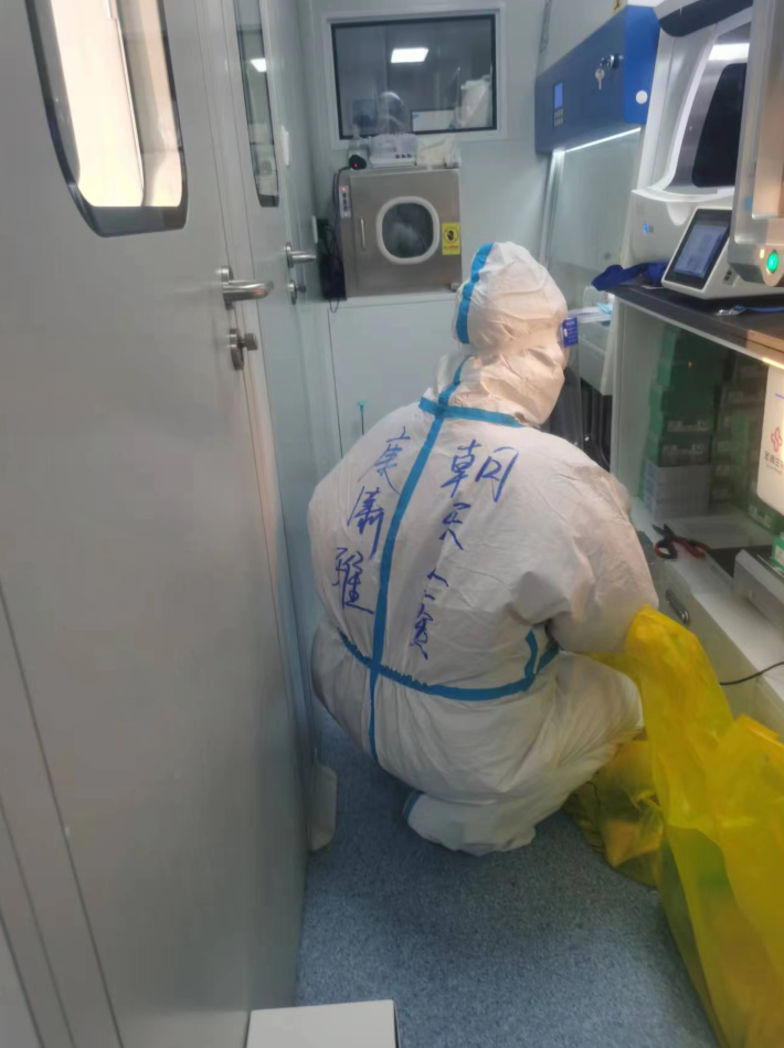 工作时间,康潇雅穿着厚厚的全套防护装备在封闭的方舱车上一待就是整整五六个小时,为了不影响整体工作效率,她都尽量选择不喝水或者少上洗手间,生怕耽误整体工作进度。下班时分,常常已是深夜,而由于时差关系,当地凌晨四点左右天就亮了,这对她来说也是一个不小的挑战,她都想方设法极力克服。