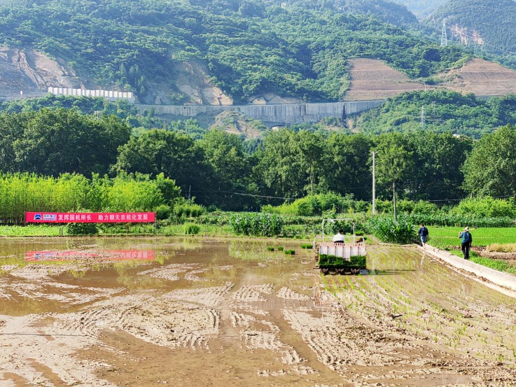 灿烂的阳光下,开着乘坐式插秧机在连片平坦的田地间来回穿梭,插秧机边走边种,不一会儿,秧苗已经被整齐划一地插到田间……6月7日,广元市水稻生产全程机械化现场会在朝天区中子镇举行,技术人员现场演示了水稻关键环节机械化作业。