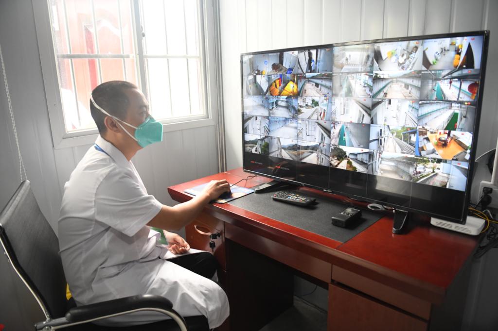 6月17日,在朝天区中子集中隔离场所(宣河隔离点)内,从事医护、安保、消杀、清洁、维护任务的工作人员们身着防护服、佩戴口罩,井然有序地在岗位上忙碌着。